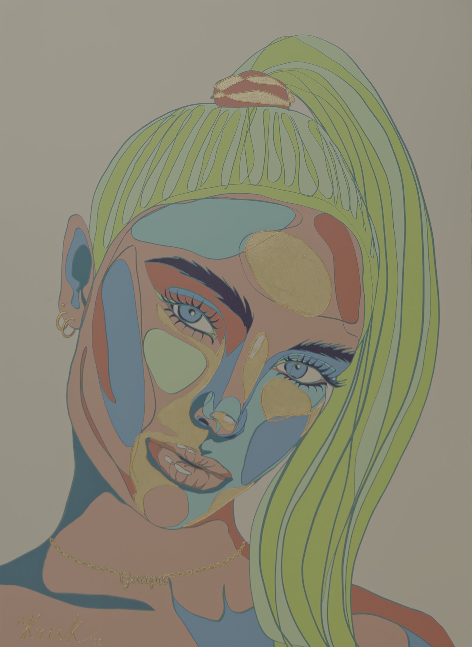 Kris K is a multidisciplinary artist known for her signature single continuous line technique, unique palette combinations, and iconic portraiture. Her work spans painting, mixed media, digital illustration and design. She has collaborated with other leading artists, musicians, and global brands.